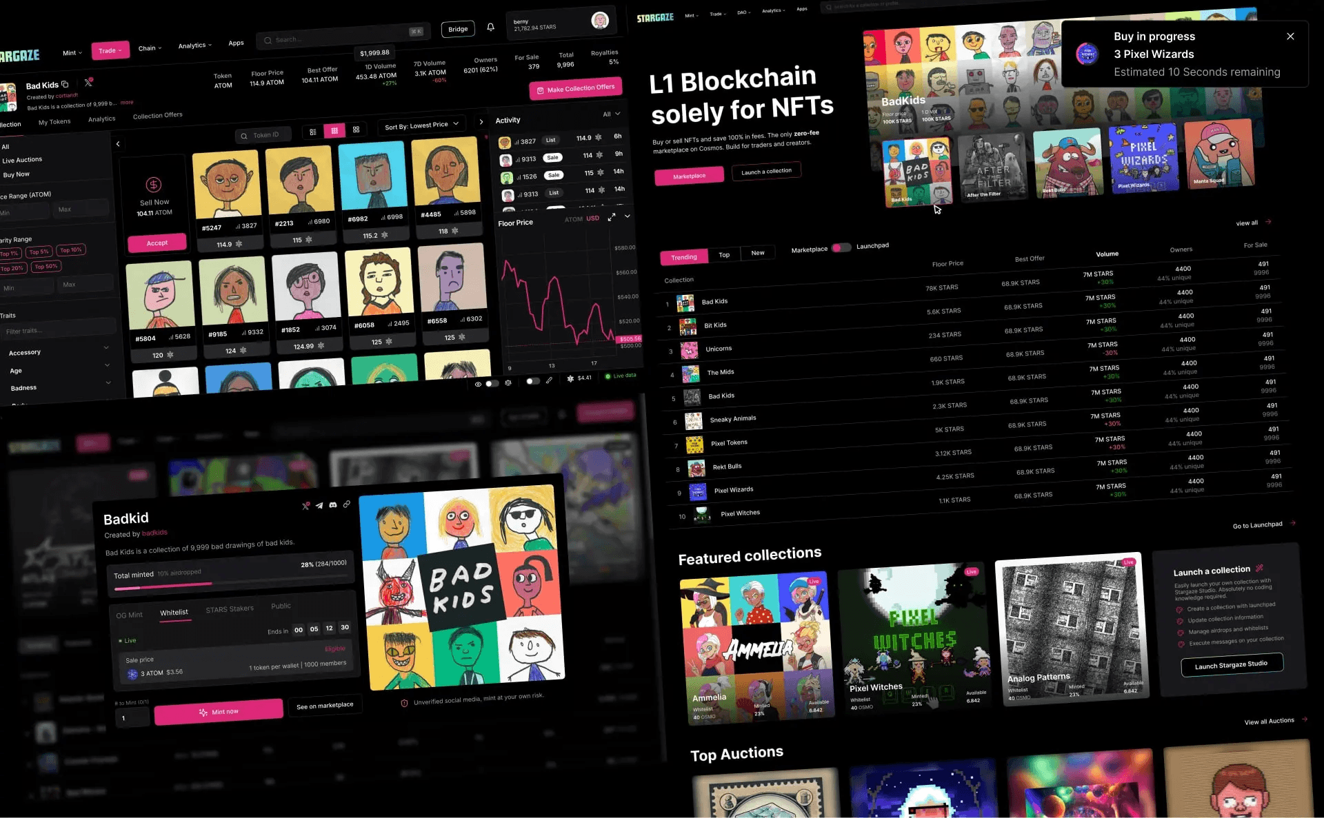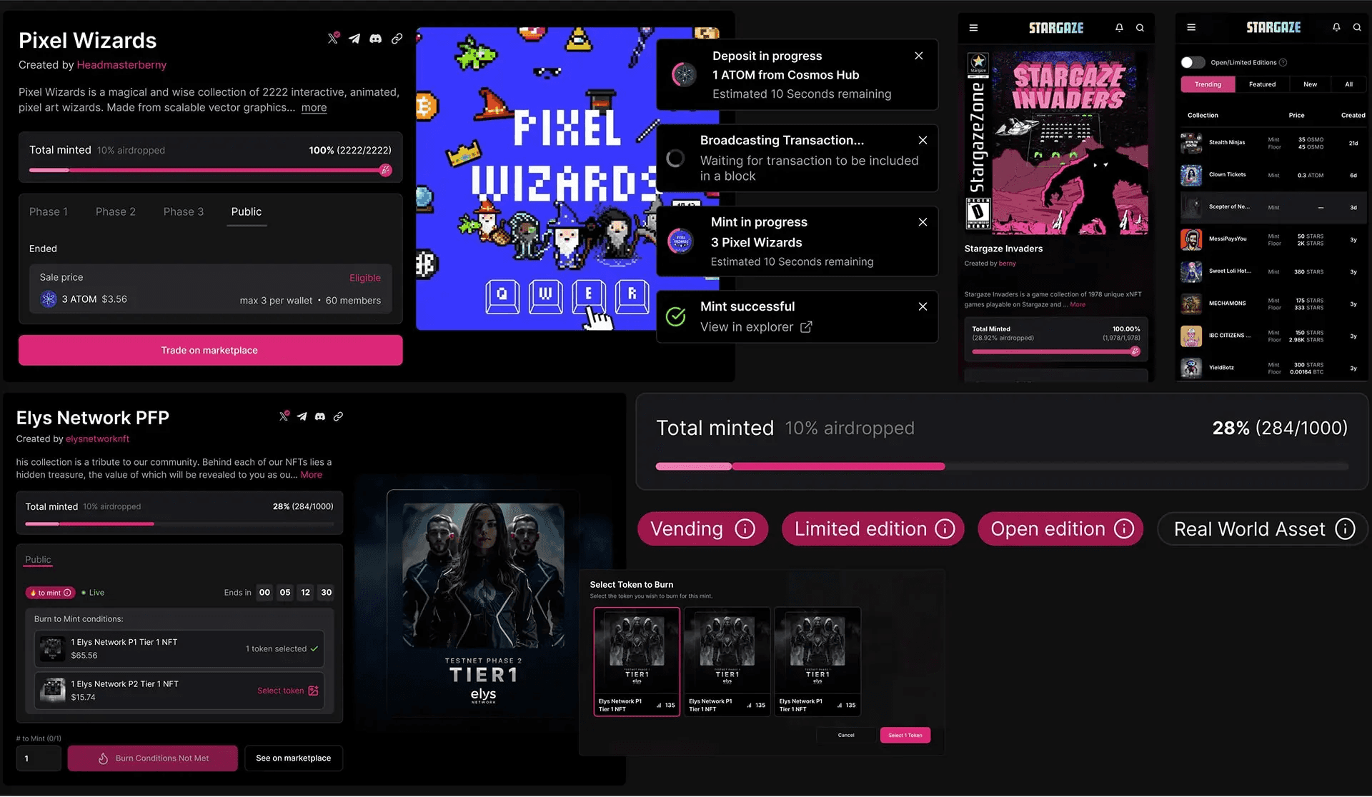 I joined Stargaze as the only designer, building an NFT world from scratch inside the Cosmos universe. From launchpads to profiles, every piece had to feel human, fluid, and creator-first. The result: $50M+ in volume and a loyal community that keeps orbiting back